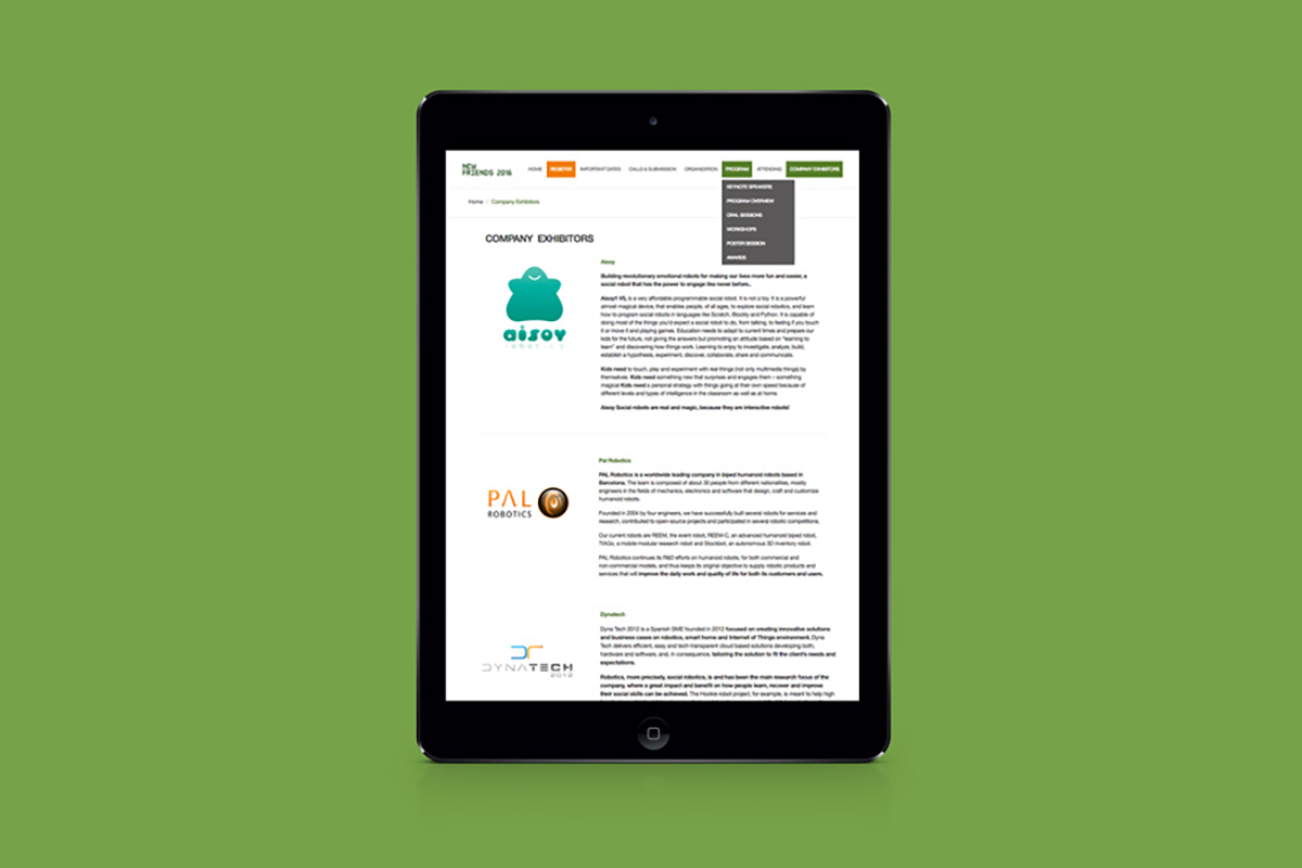 New Friends Conference brings together the most important experts and research groups from around the world in Social Robotics, which for three days, will participate in an intense program of keynote lectures, poster presentations, workshops and debates.